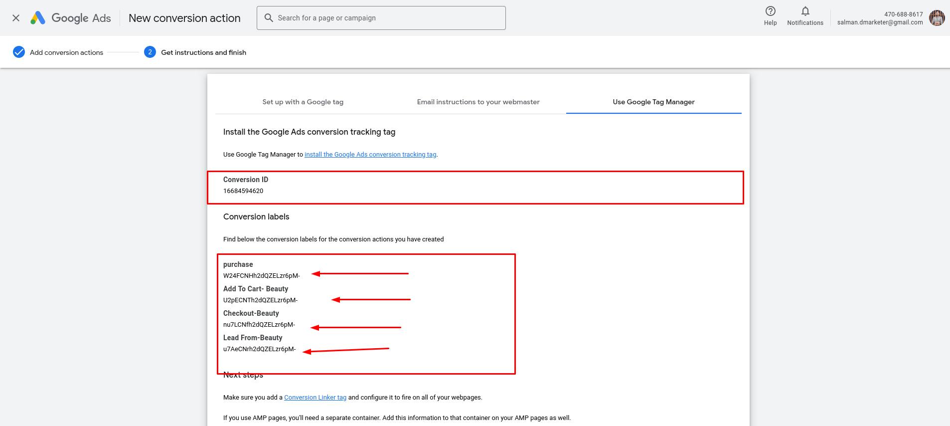 → Integration with Existing Campaigns – Linked enhanced conversions to existing purchase, lead, and signup conversion actions