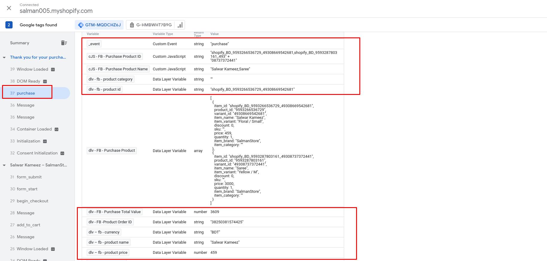 → Mapped dataLayer variables to capture dynamic product data (ID, name, price, quantity, currency)
