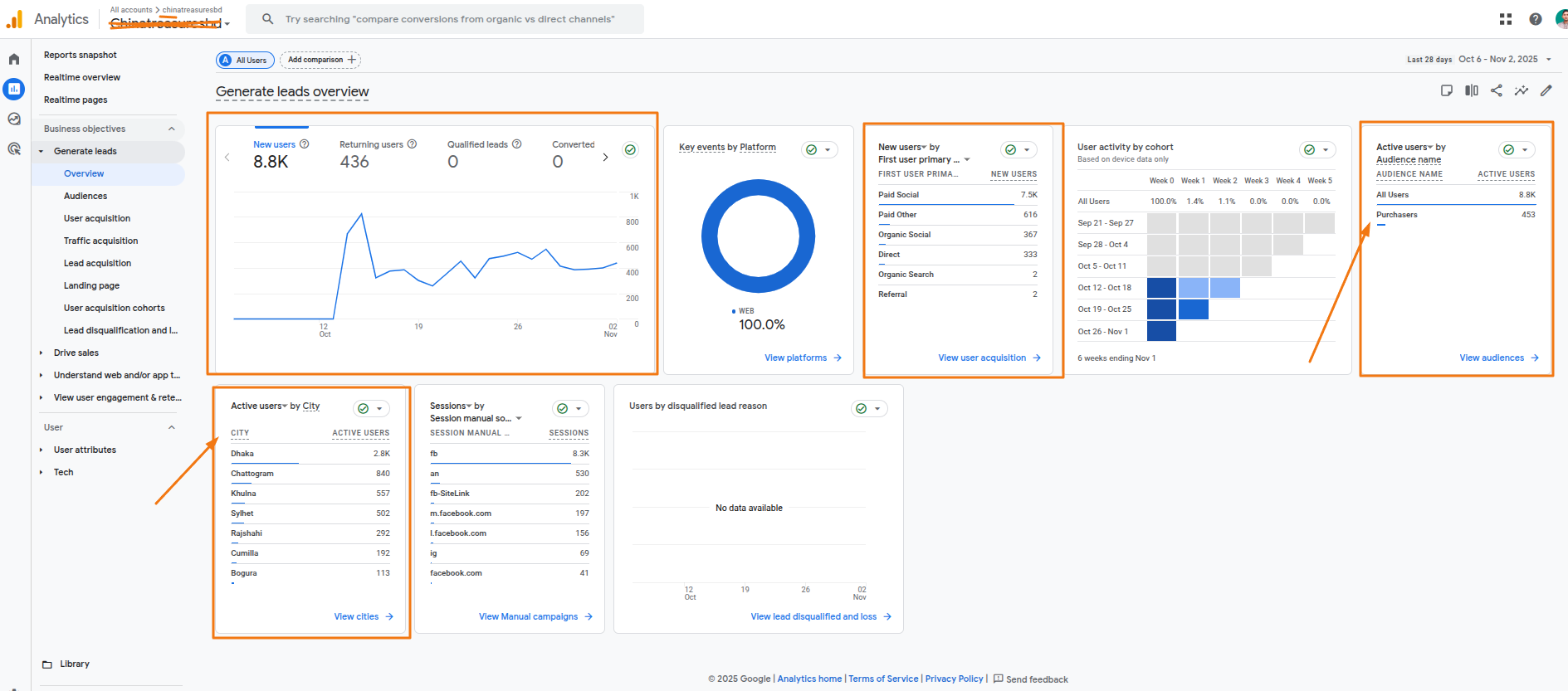 → Created custom audiences (website visitors, add-to-cart, past buyers).